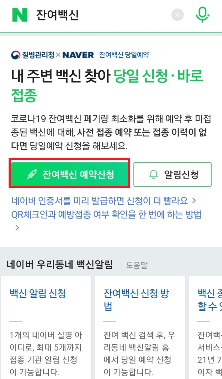 코로나가 장기화되고 있다보니 코로나 백신에 대한 수요가 점점 많아지고 있습니다. 코로나 백신은 이제 선택이 아닌 필수인 것 같은데요. 하지만 백신의 부작용이 걱정되어 백신 접종을 거부하는 분들이 더러 있다고 합니다. 그러다보니 백신이 남게되어 백신의 여유분이 생기는 상화잉 발생하는데요. 백신은 기간을 놓치면 폐기를 해버려야 되기 때문에 남는 백신을 다른 분들에게 접종하는 잔여 백신예약을 실시하고 있습니다.