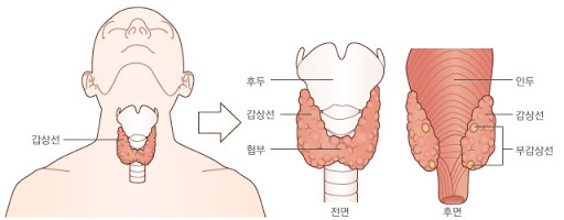 갑상선은 목의 한 가운 데에서 앞으로 튀어나온 갑상연골의 아래쪽에 나비모양으로 기도의 주위를 감싸고 있는 신체에서 가장 큰 내분비선입니다. 갑상선호르몬은 우리 몸의 에