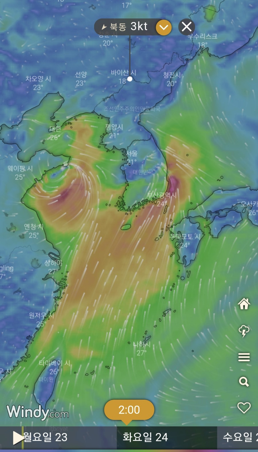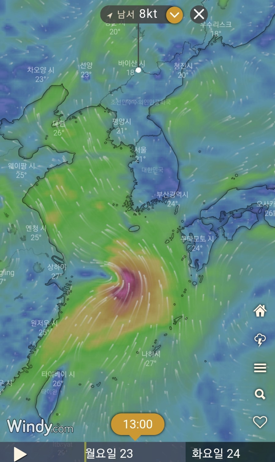 08월 23일 밤 / 태풍경로 : 동해남부남쪽안쪽먼바다