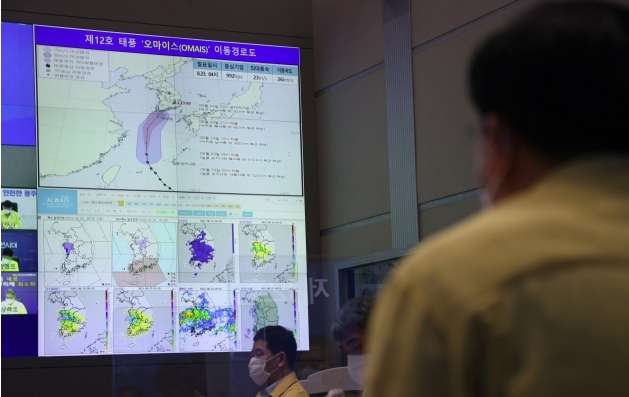 제12호 태풍 오마이스는 팔라우에서 제출한 이름으로 '주위를 어슬렁 거리는'을 의미합니다. 제12호 태풍 오마이스는 현재 매시각 35km 속도로 북진하고 있으며 제주도 서귀포 남남서 138km 해상에 위치하고 있습니다. 태풍경로를 예상해보자면 24일 자정쯤 경남 남해 부근에 상륙하겠고 24일 오전 경에 온대저기압으로 변질 될 것으로 보입니다.