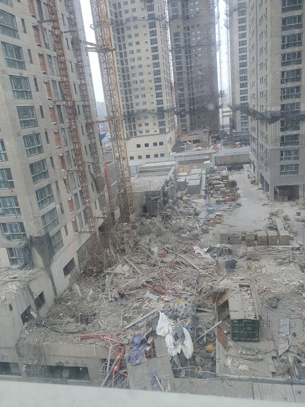 현재 외벽이 붕괴된 사고 현장은 전쟁터를 떠오르게 할 정도로 건물 잔해에 깔린 차량 10여 대는 형체를 알아볼 수 없을 정도로 파손되어 있으며 도로 위에는 폭탄을 맞은 듯한 구조물들이 널려있습니다.